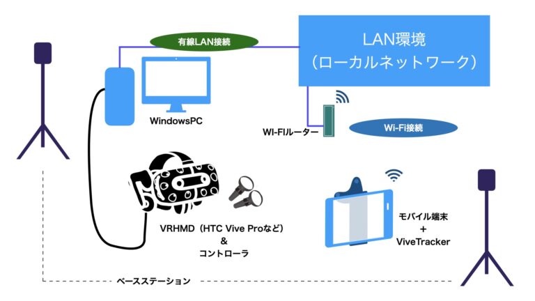 ローカルネットワーク内で映像配信を行うため、VR実行用のPCと閲覧用モバイルデバイス(iPadなど)はWi-Fiなどで同一のネットワークに接続しておきます。
